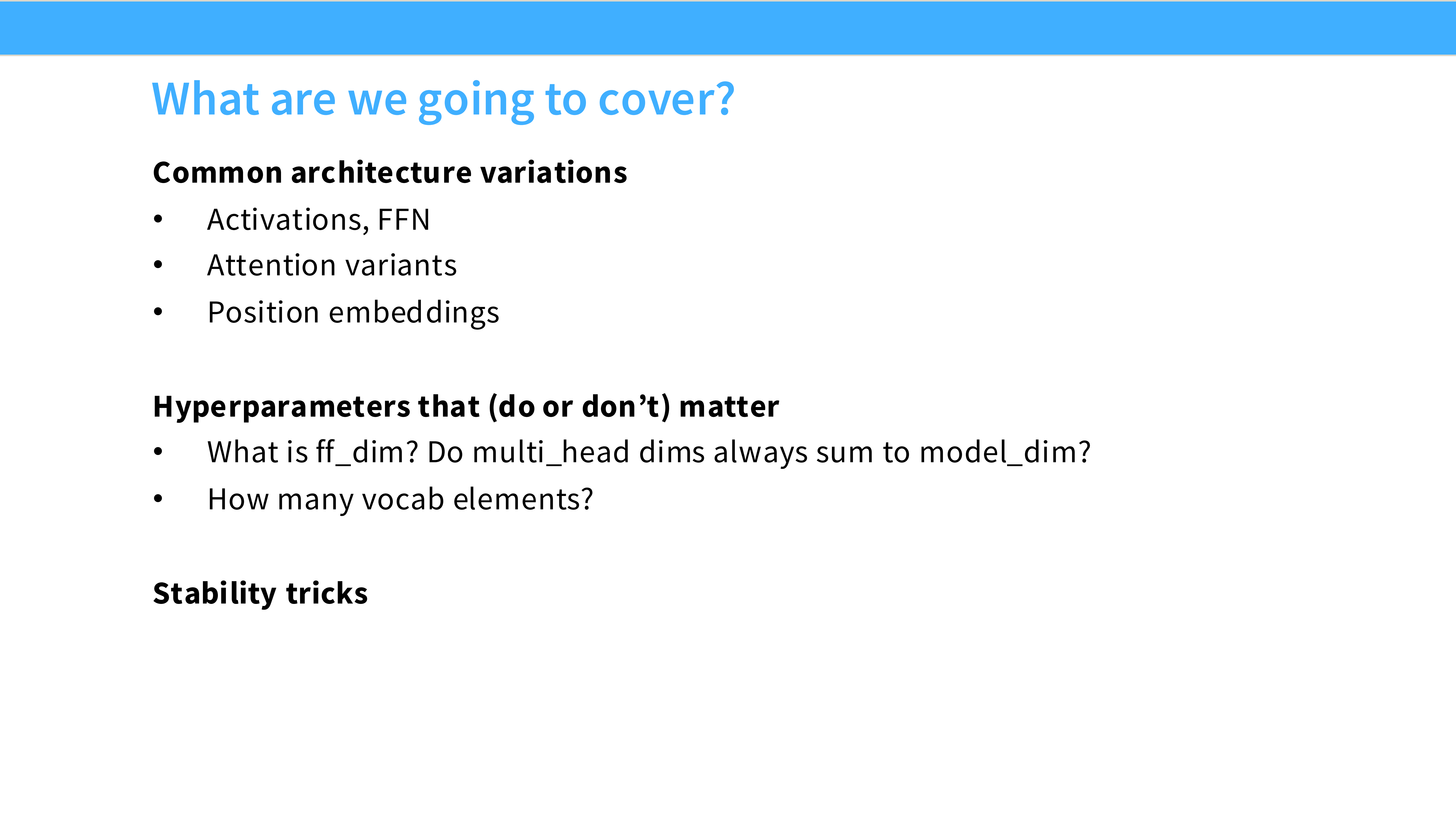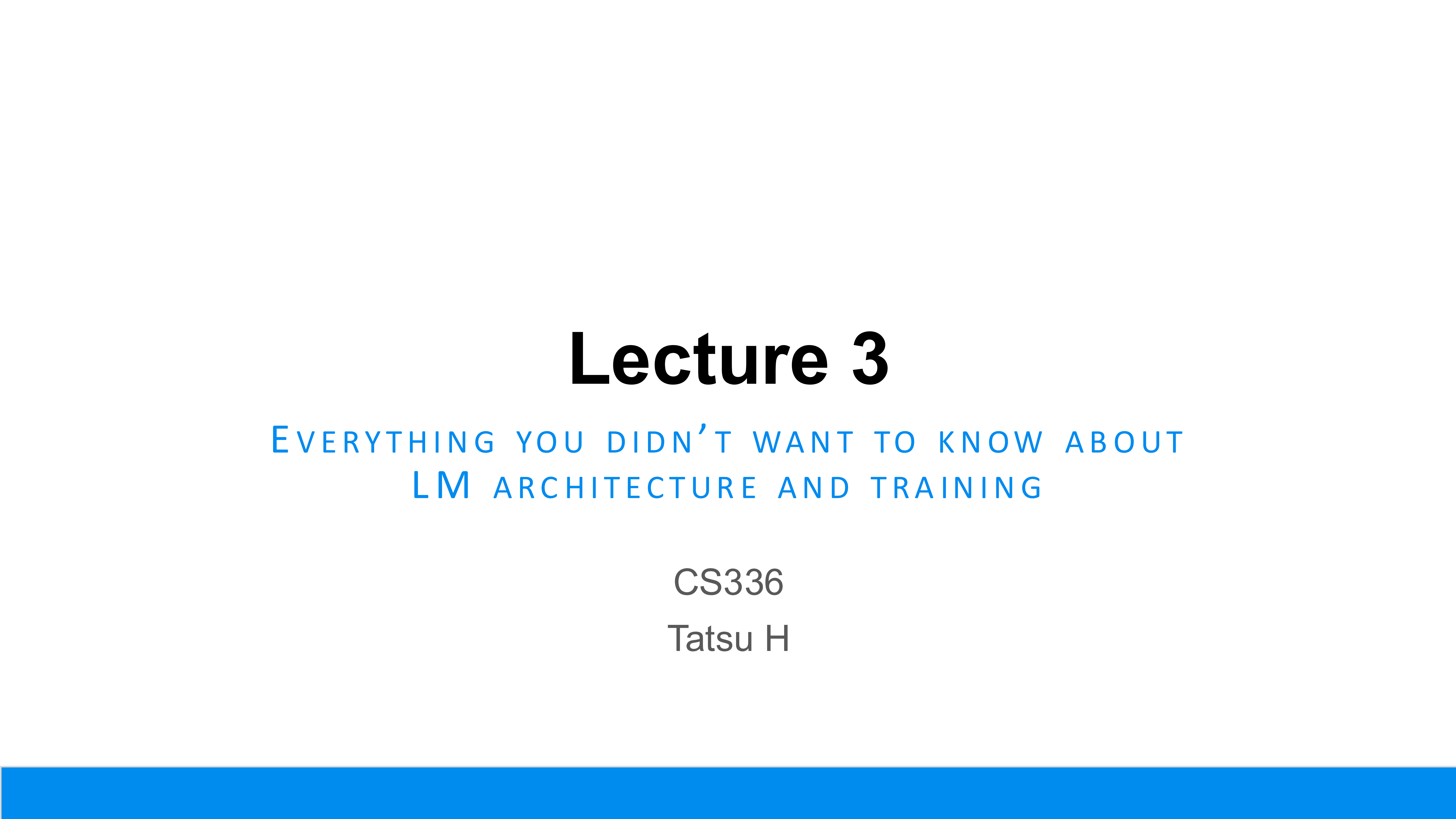 - 内容: 课程名称 “Lecture 3: Everything you didn’t want to know about LM architecture and training”。