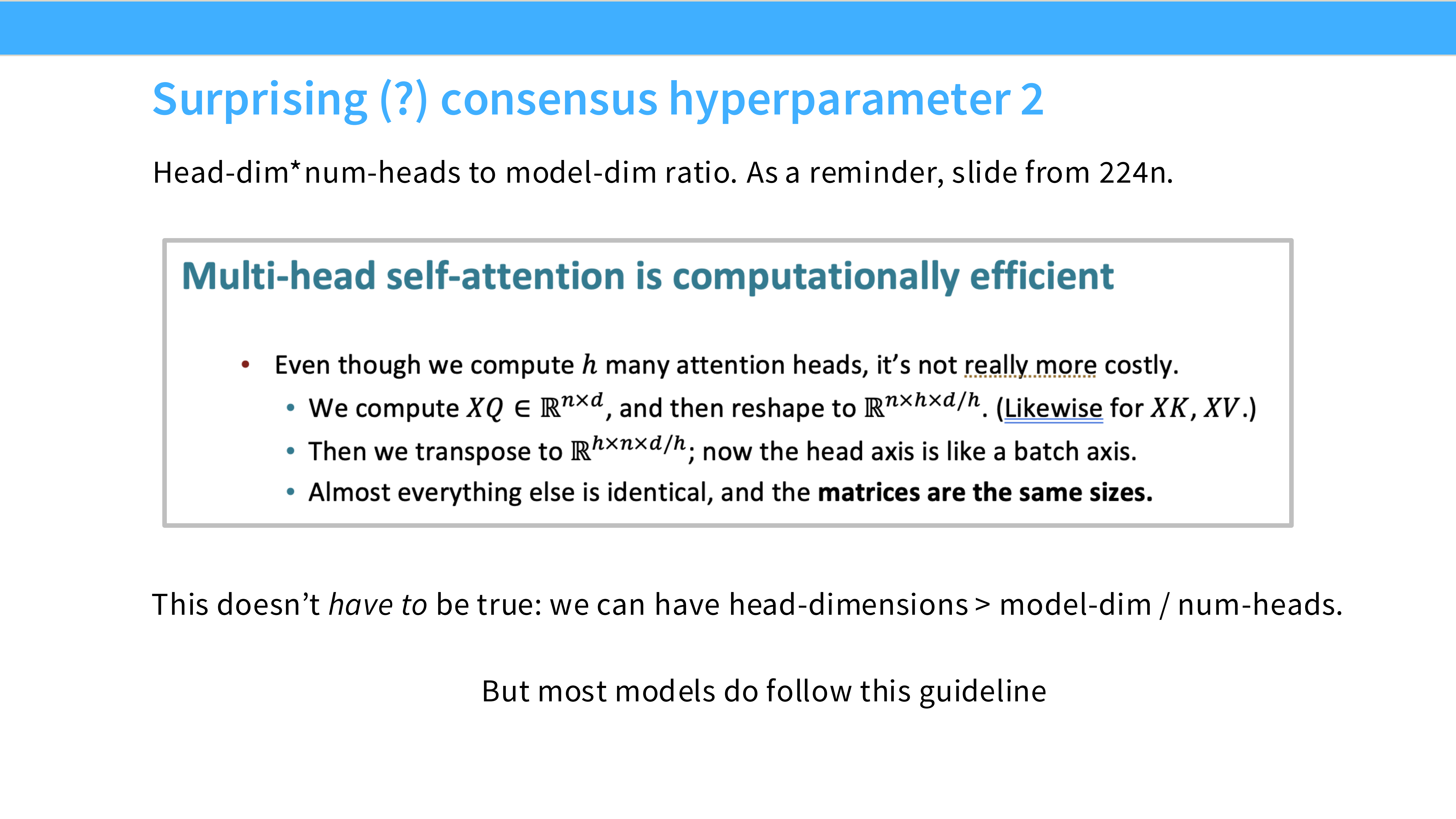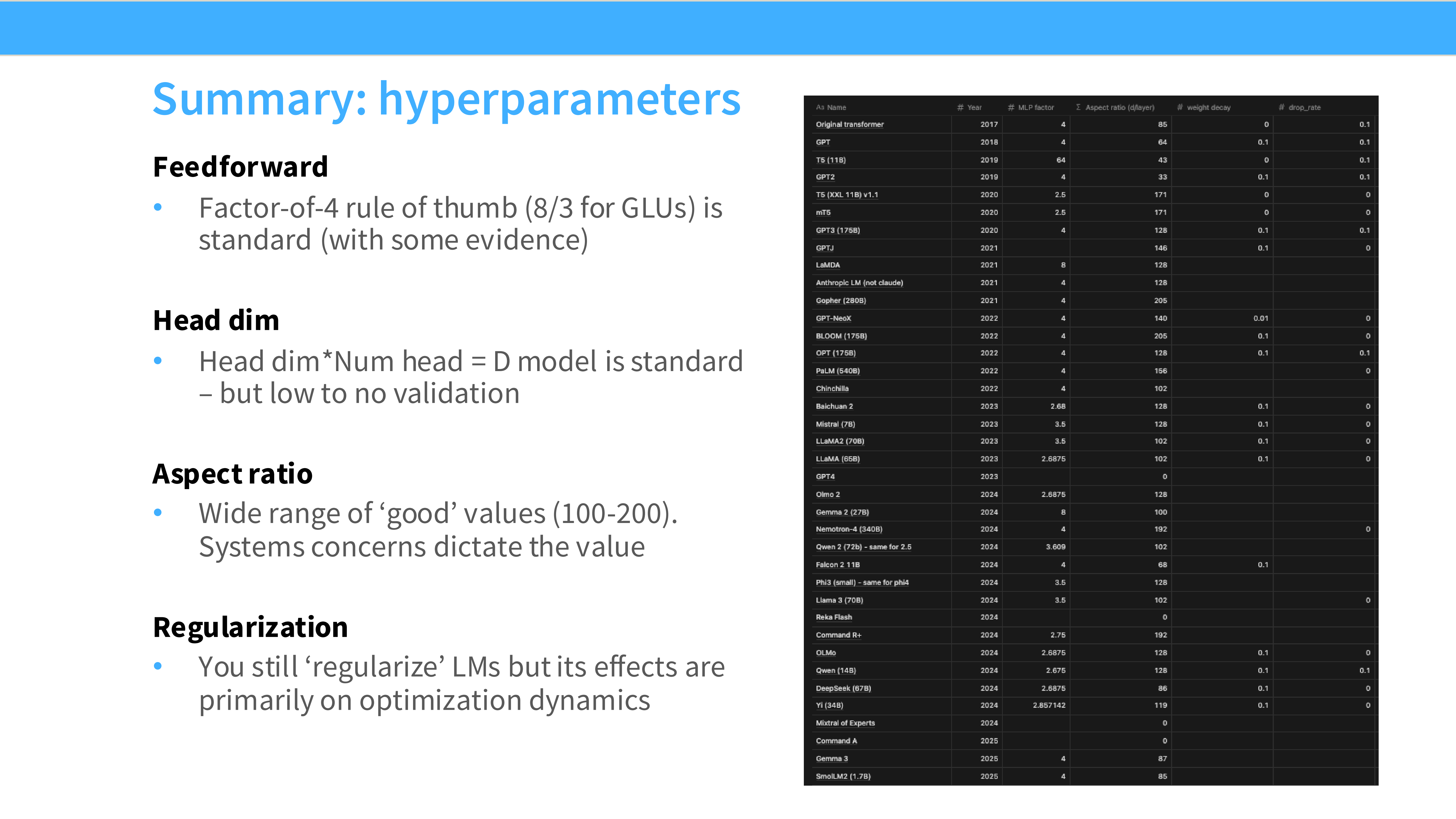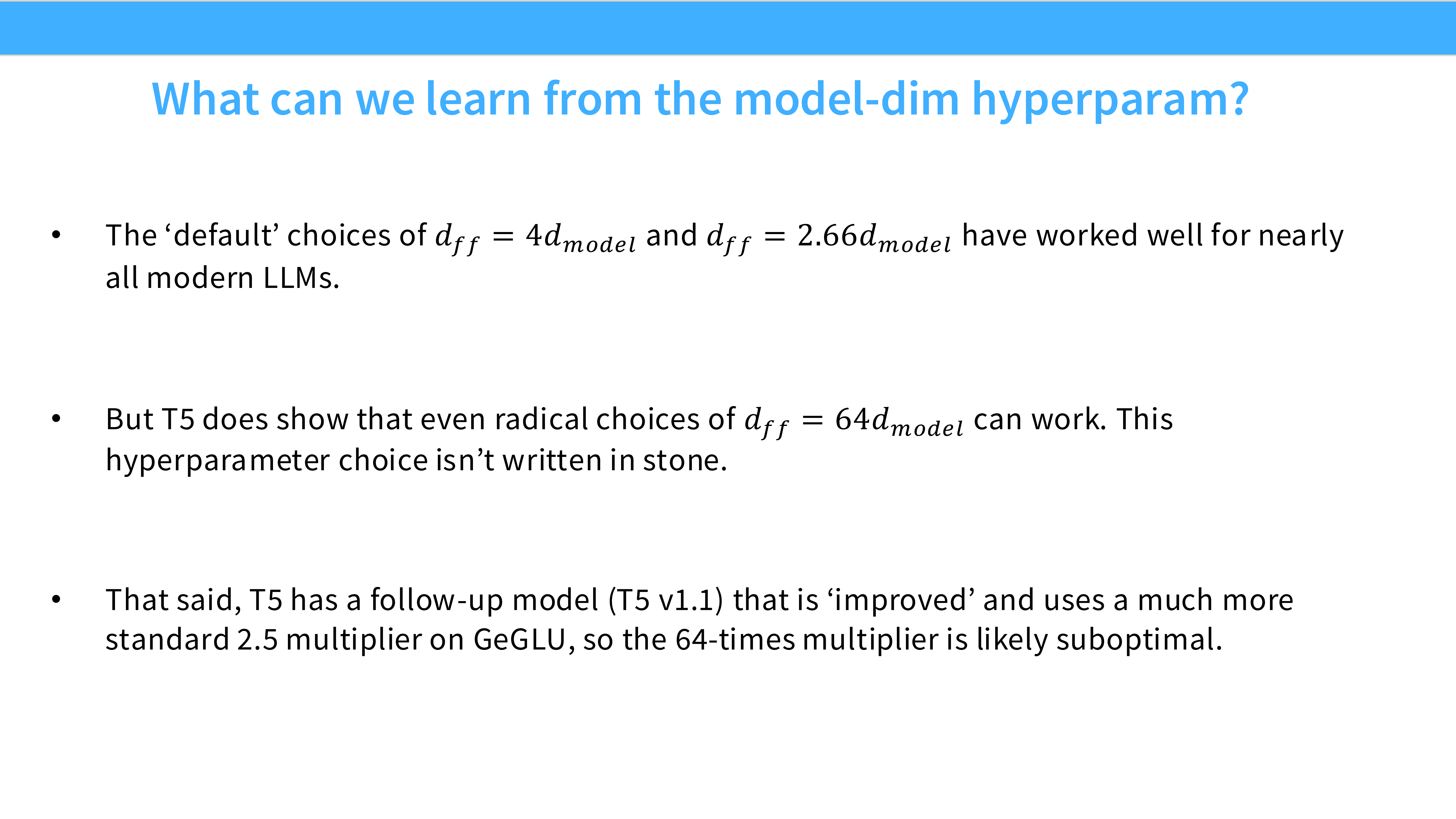 - 警告: 虽然我们要学习最佳实践,但不要盲目复制。很多配置(如 128 head dim)可能是因为硬件原因,也可能只是习惯,未必是科学上的最优解。