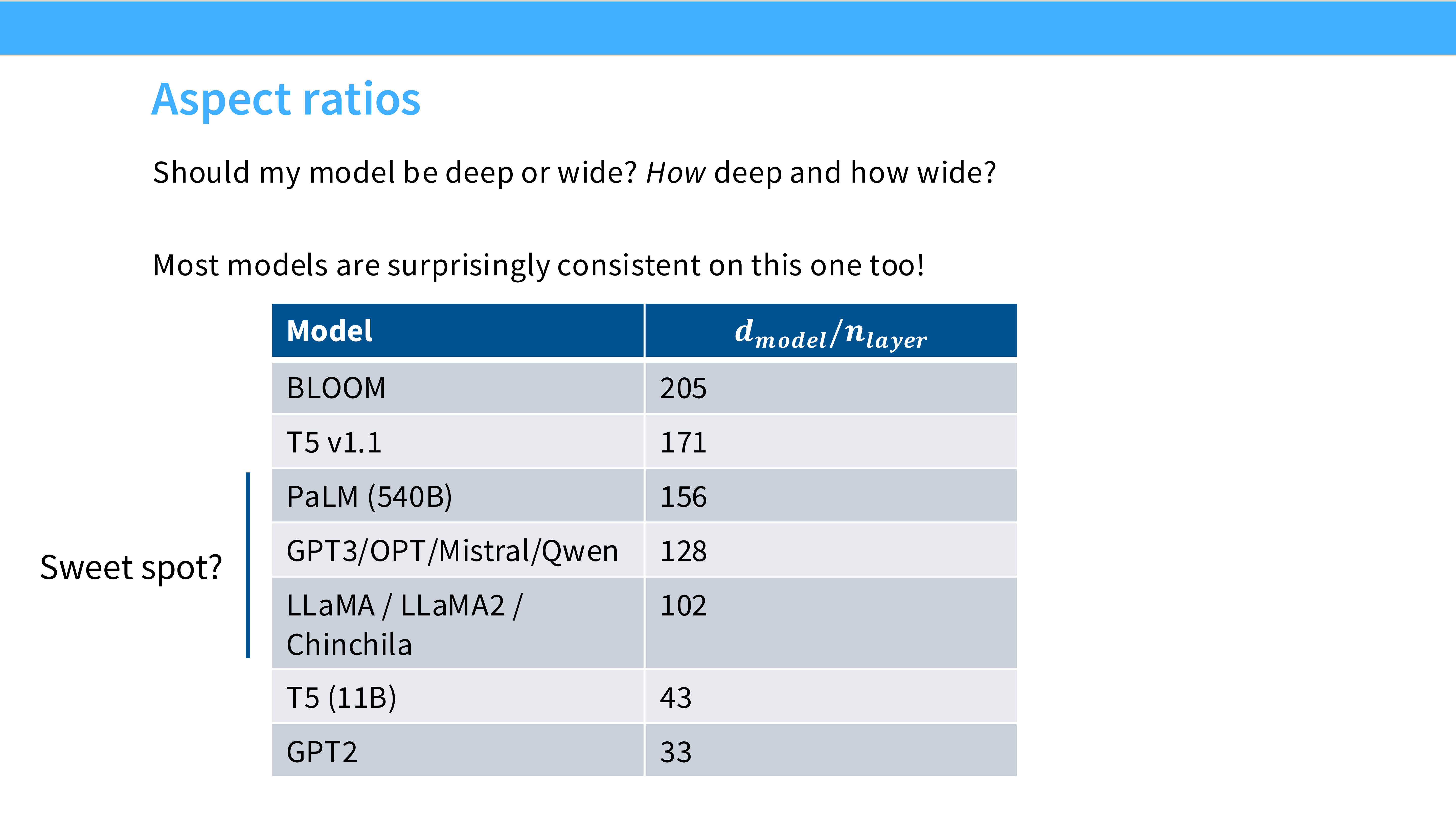 - Sweet Spot: 通常 $d_{model} \approx 128 \times n_{layers}$。