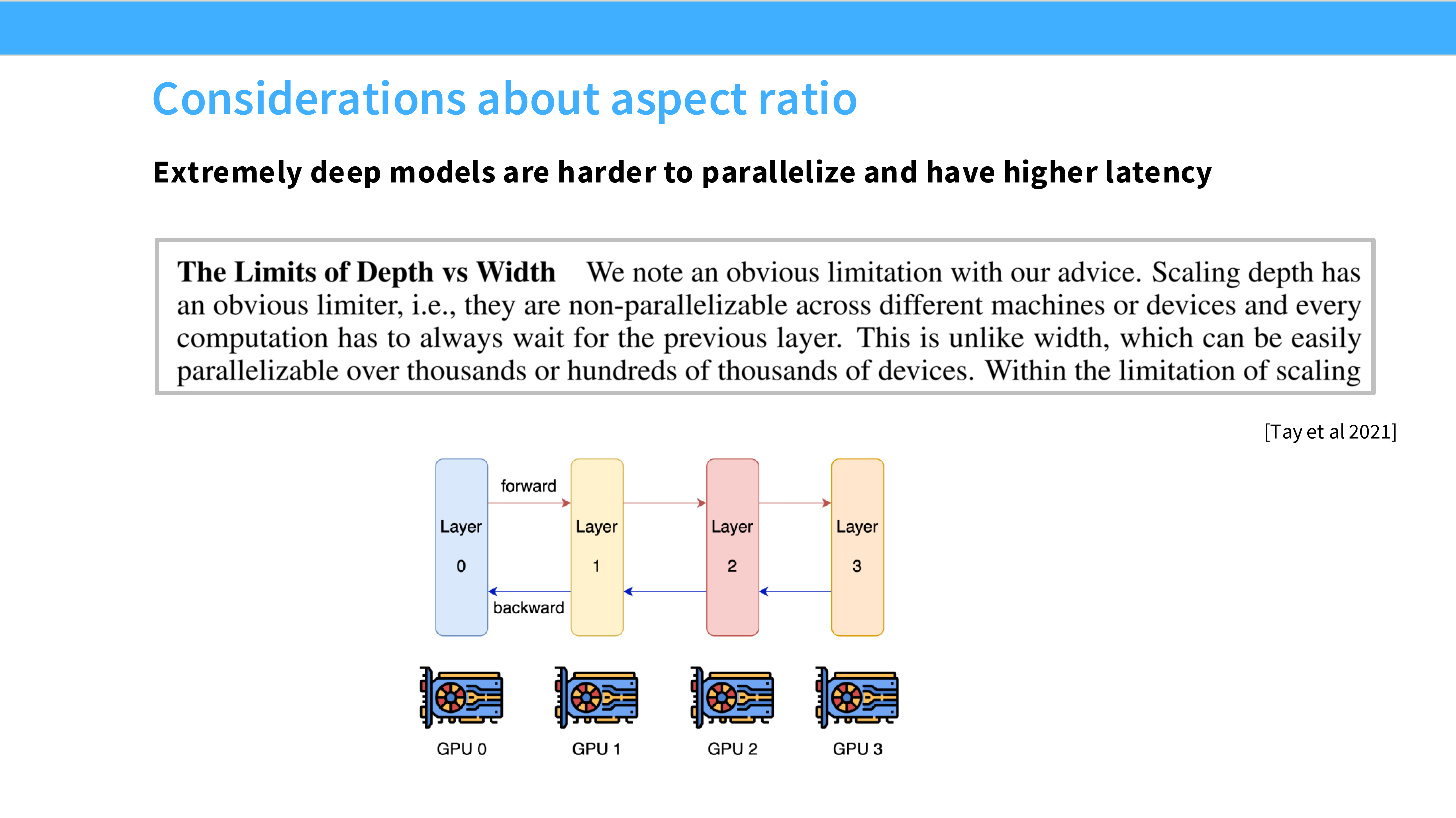 - 提示: 不要让模型太深(例如超过 100 层)。太深会导致推理延迟高,且流水线并行(Pipeline Parallelism)更难切分。稍微宽一点对系统更友好。