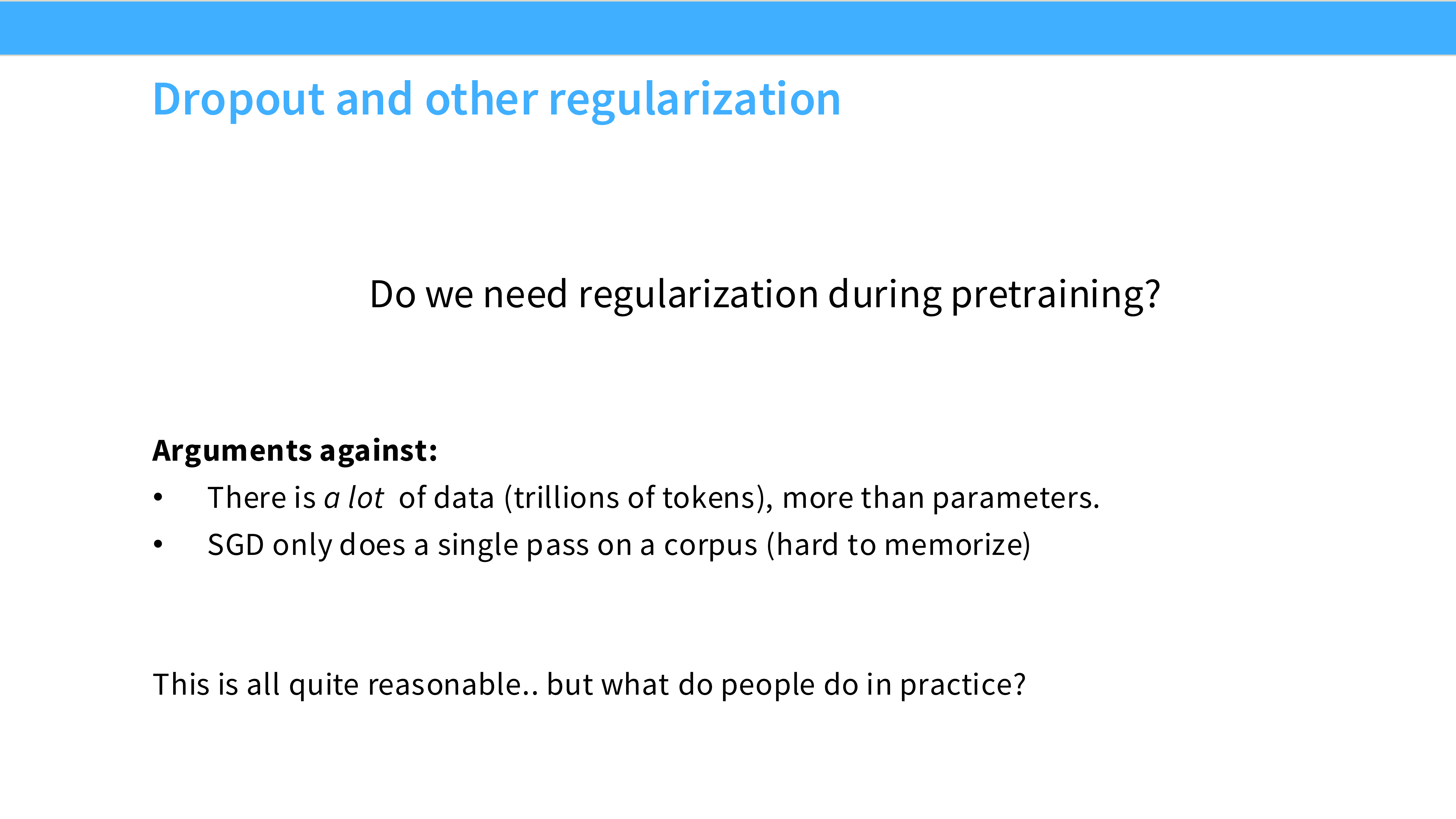 - 问题: 这么多数据,还需要防过拟合吗?
