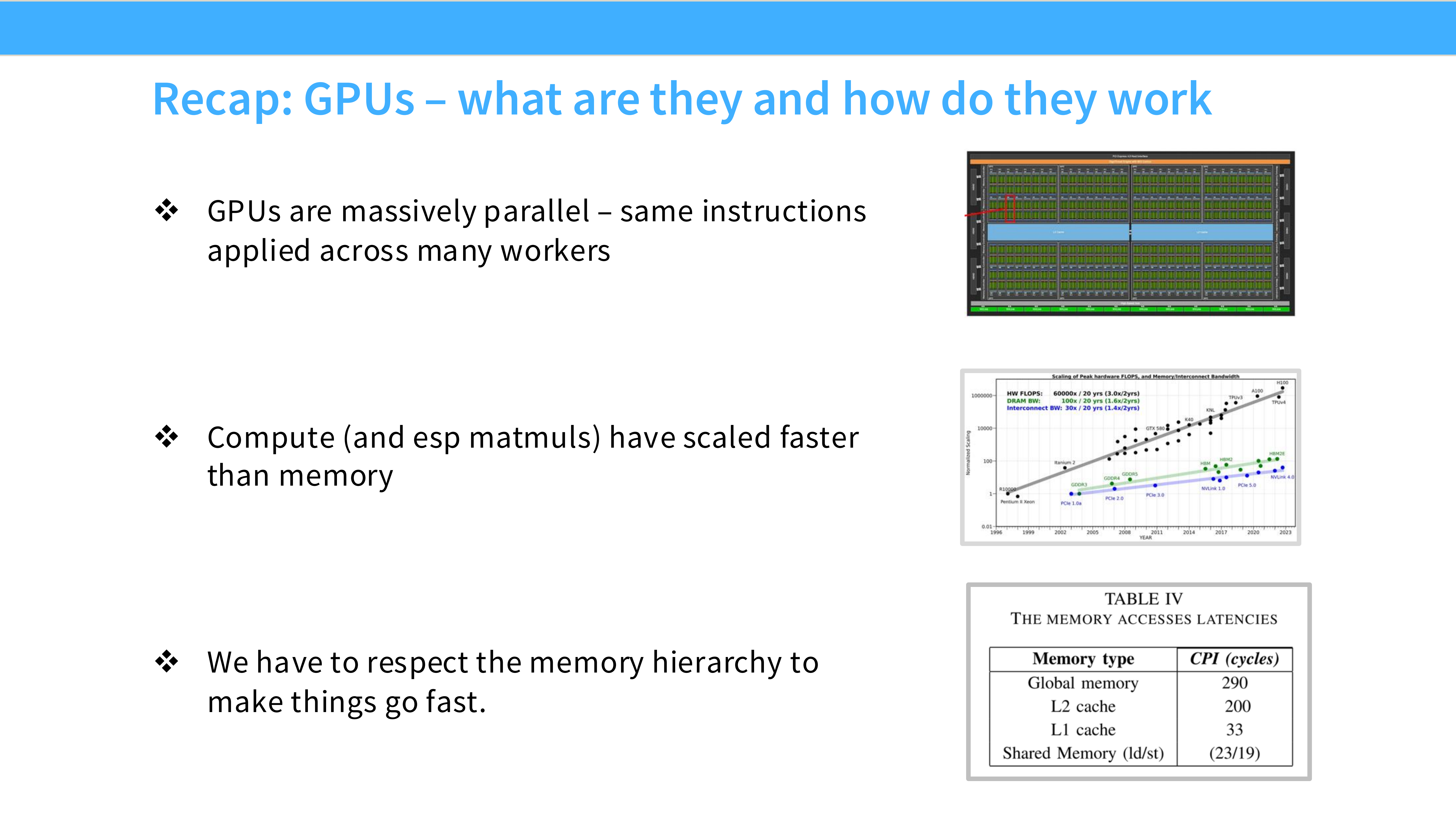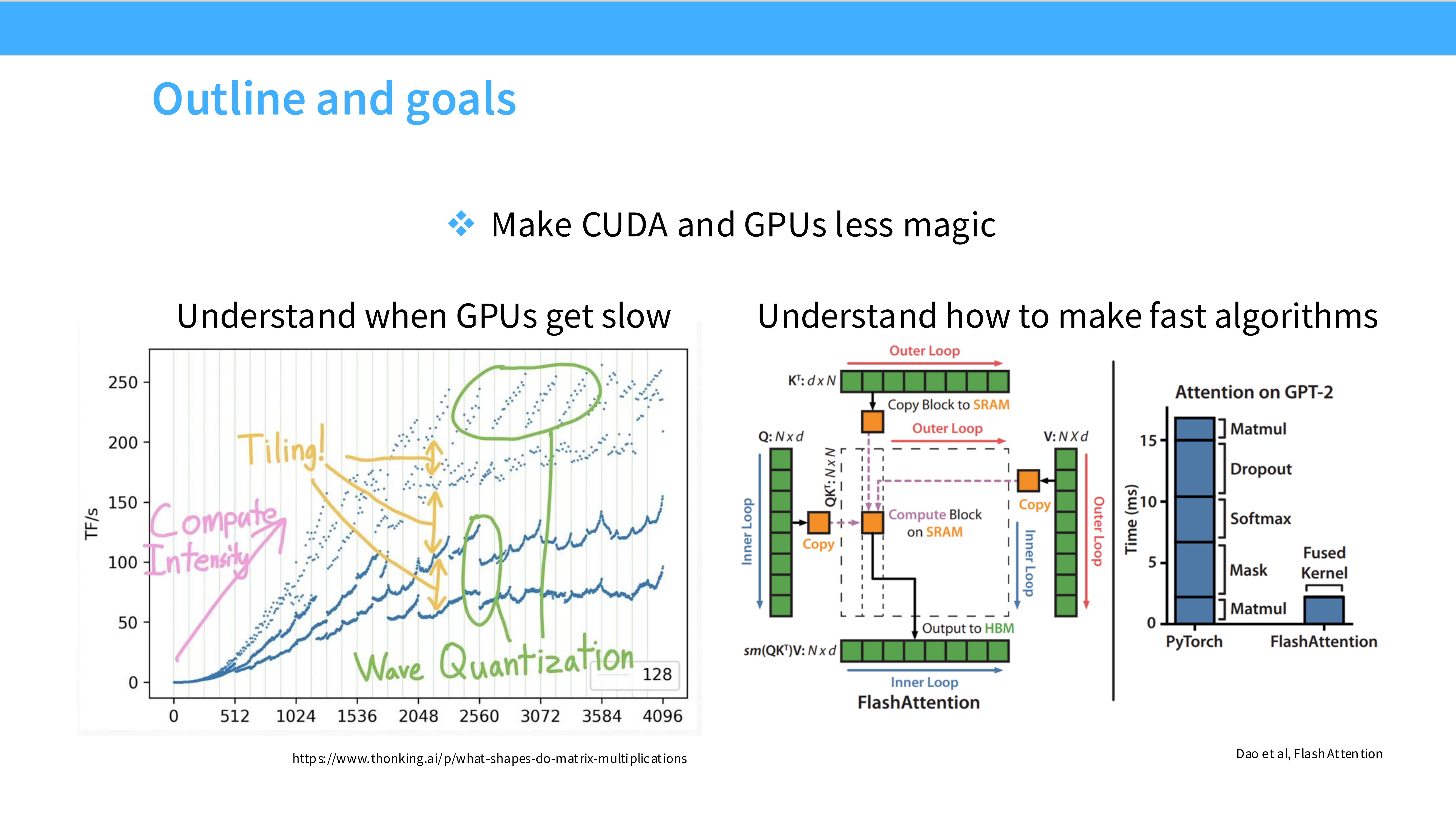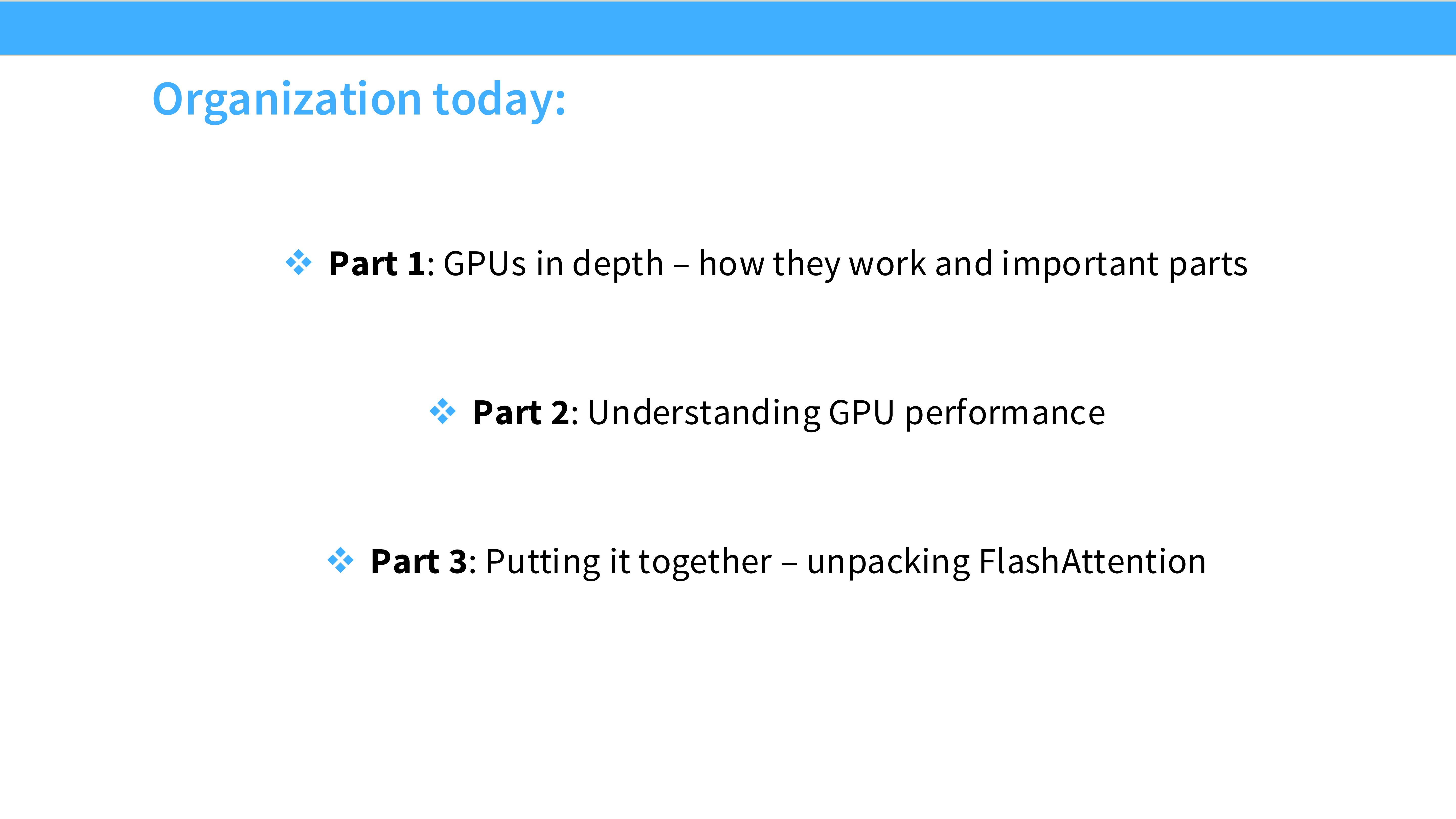 - Part 1: GPUs in depth —— 深入硬件底层,讲解 GPU 的工作原理、内存层级和核心组件。