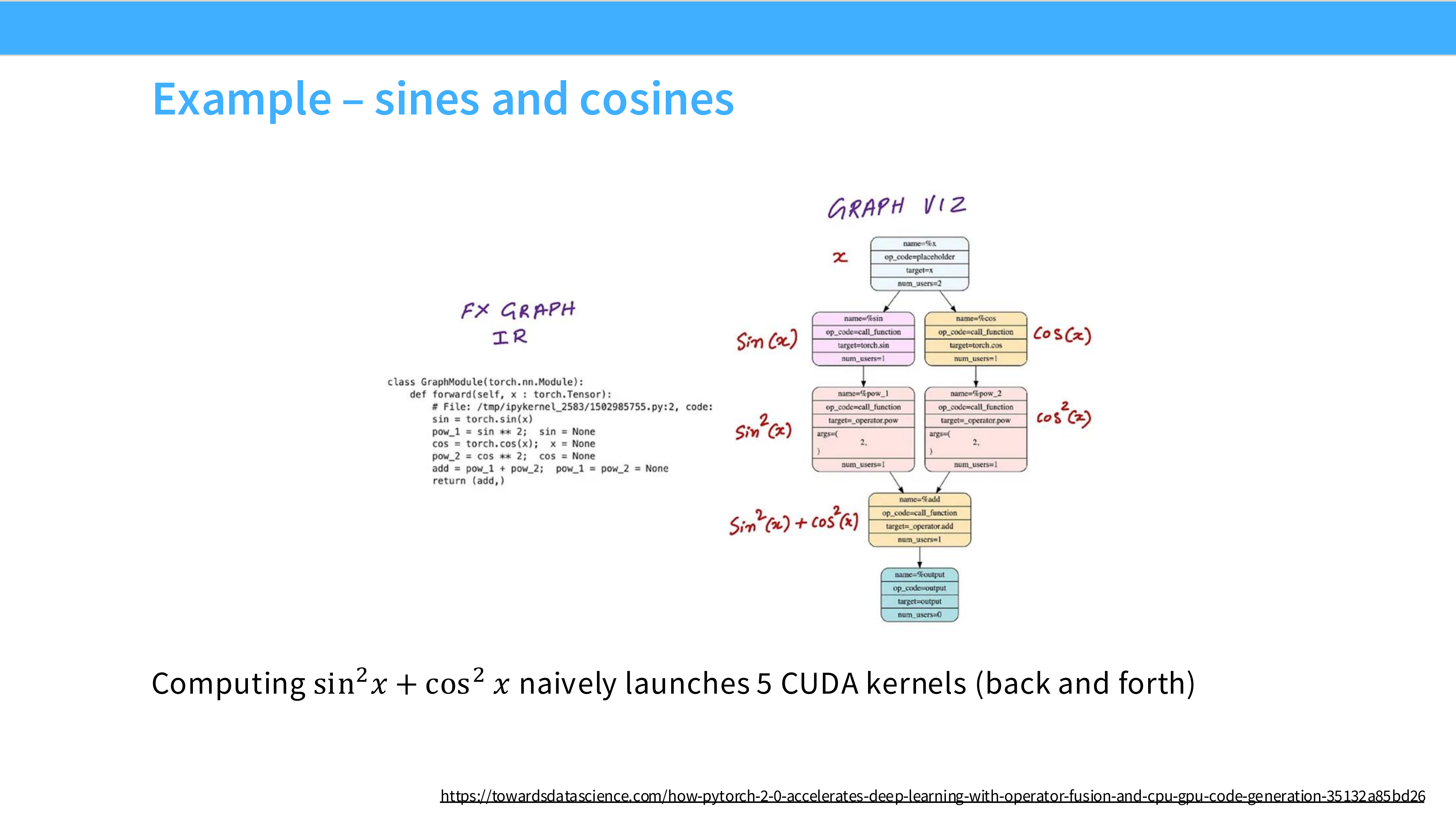 - TorchInductor: PyTorch 2.0 的编译器。它可以自动分析计算图,将多个 Pointwise 操作“融合”成一个单一的 CUDA Kernel,无需手写 CUDA 代码。