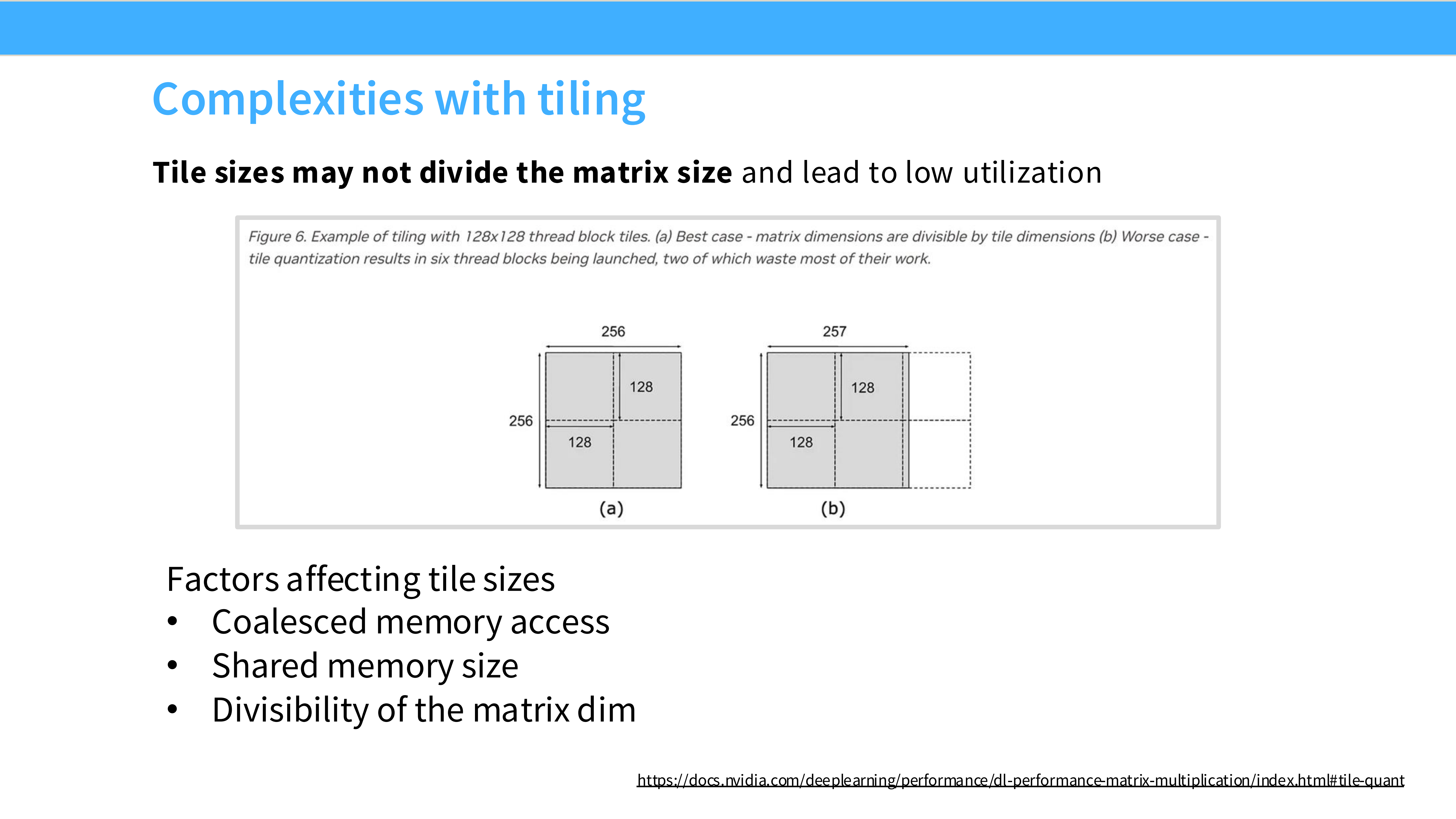 - 如果矩阵大小不能被 Tile 大小整除,边缘会多出一部分。