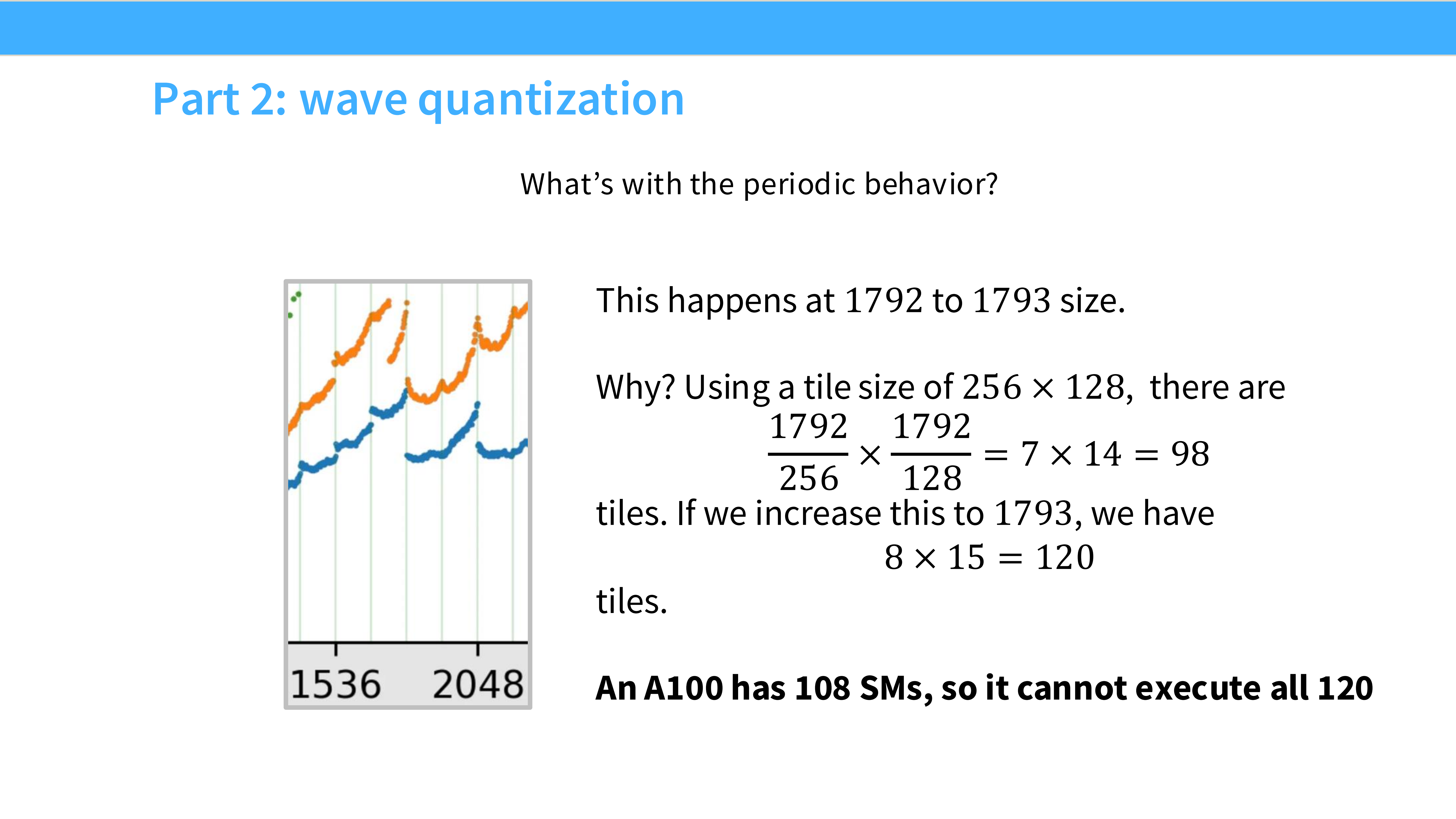 - 内容解析: 展示了一个锯齿状的性能曲线。为什么矩阵大小从 2048 增加到 2049,性能会突然下降?