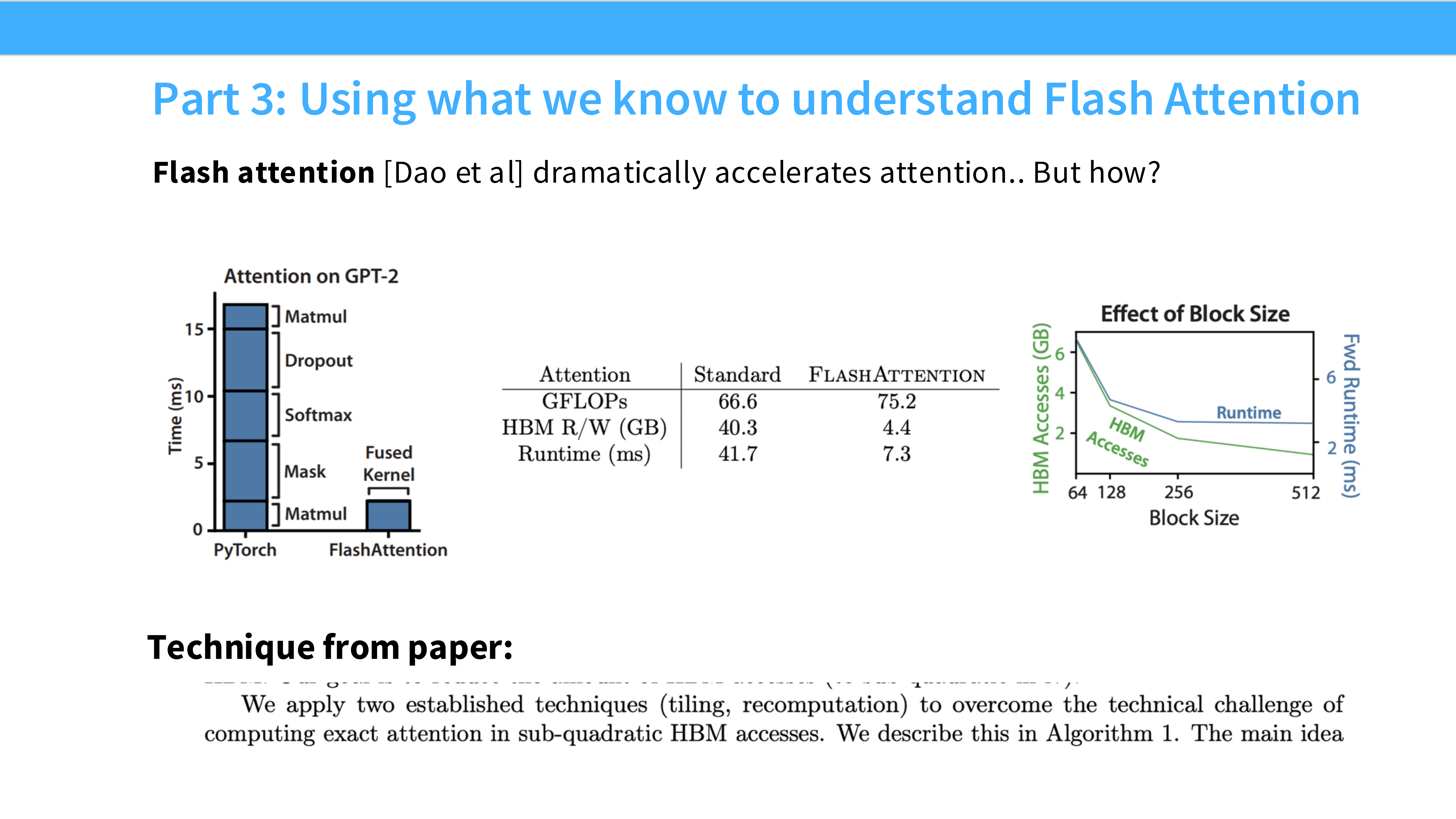 - Part 3: Putting it together —— 拆解 FlashAttention,看它如何综合运用上述技巧解决实际问题。