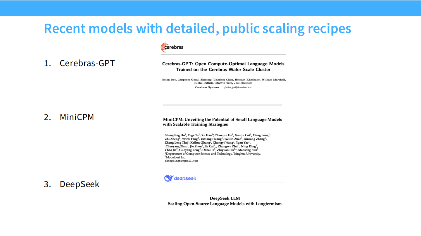 - 2024: DeepSeek, MiniCPM, Llama 3, Hunyuan-Large —— 这一年爆发了多种 Scaling 策略。