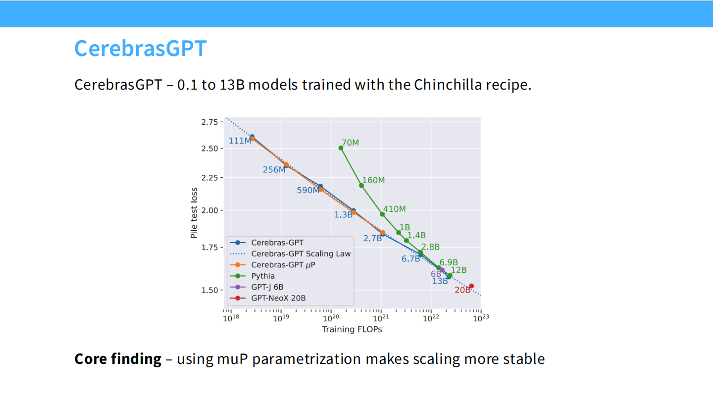 - Cerebras-GPT: 使用 muP + Chinchilla 公式。