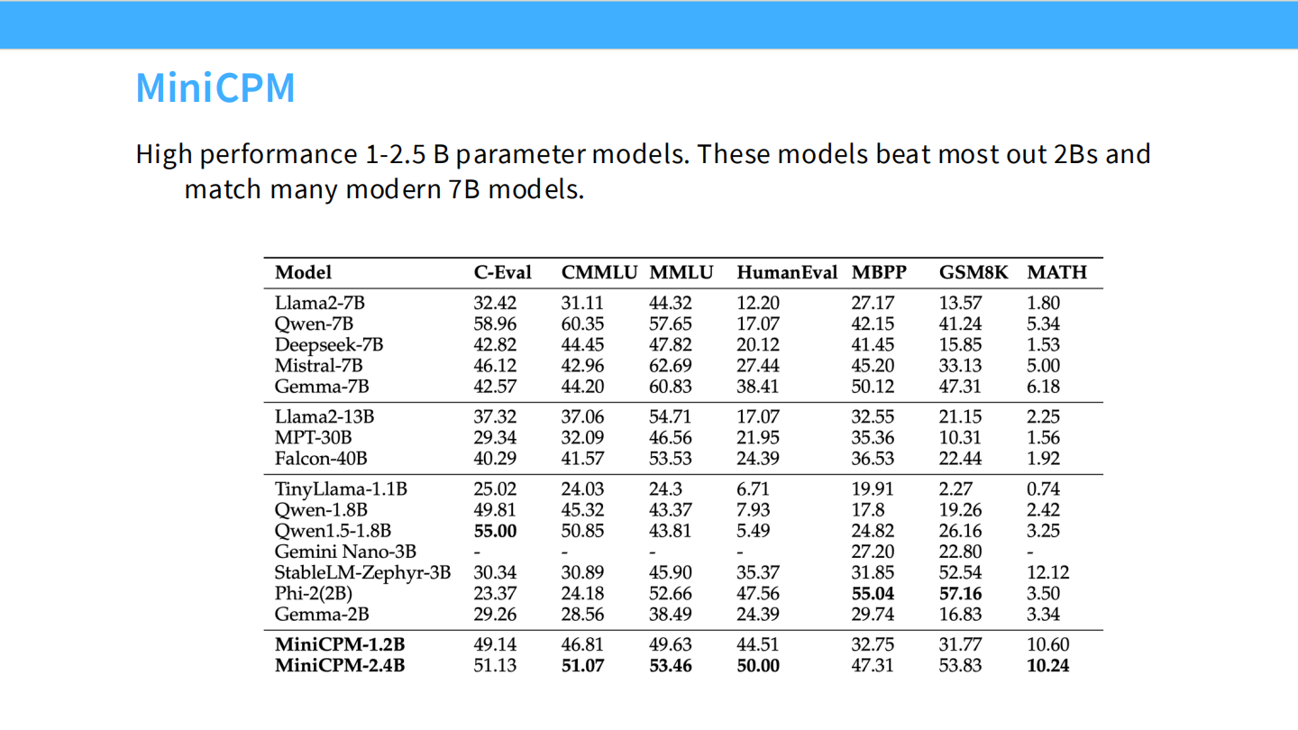 - 背景: 清华团队发布的 2.4B 小模型。性能极强。