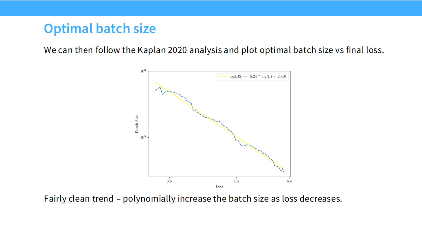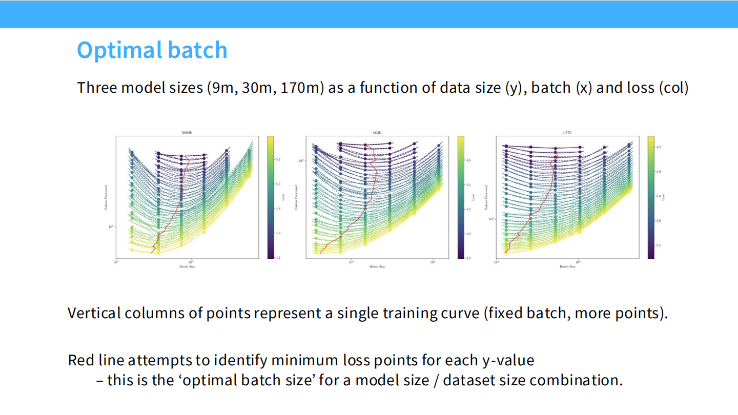 - 图表: 最佳 Batch Size 随着 Loss 降低(模型变强)而指数级增长。这符合 OpenAI 早期的结论。