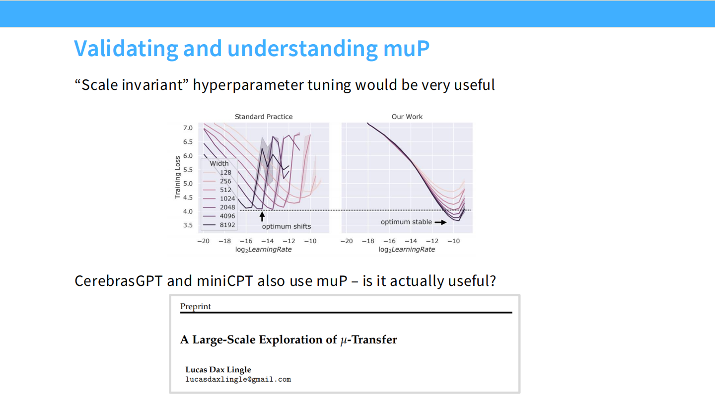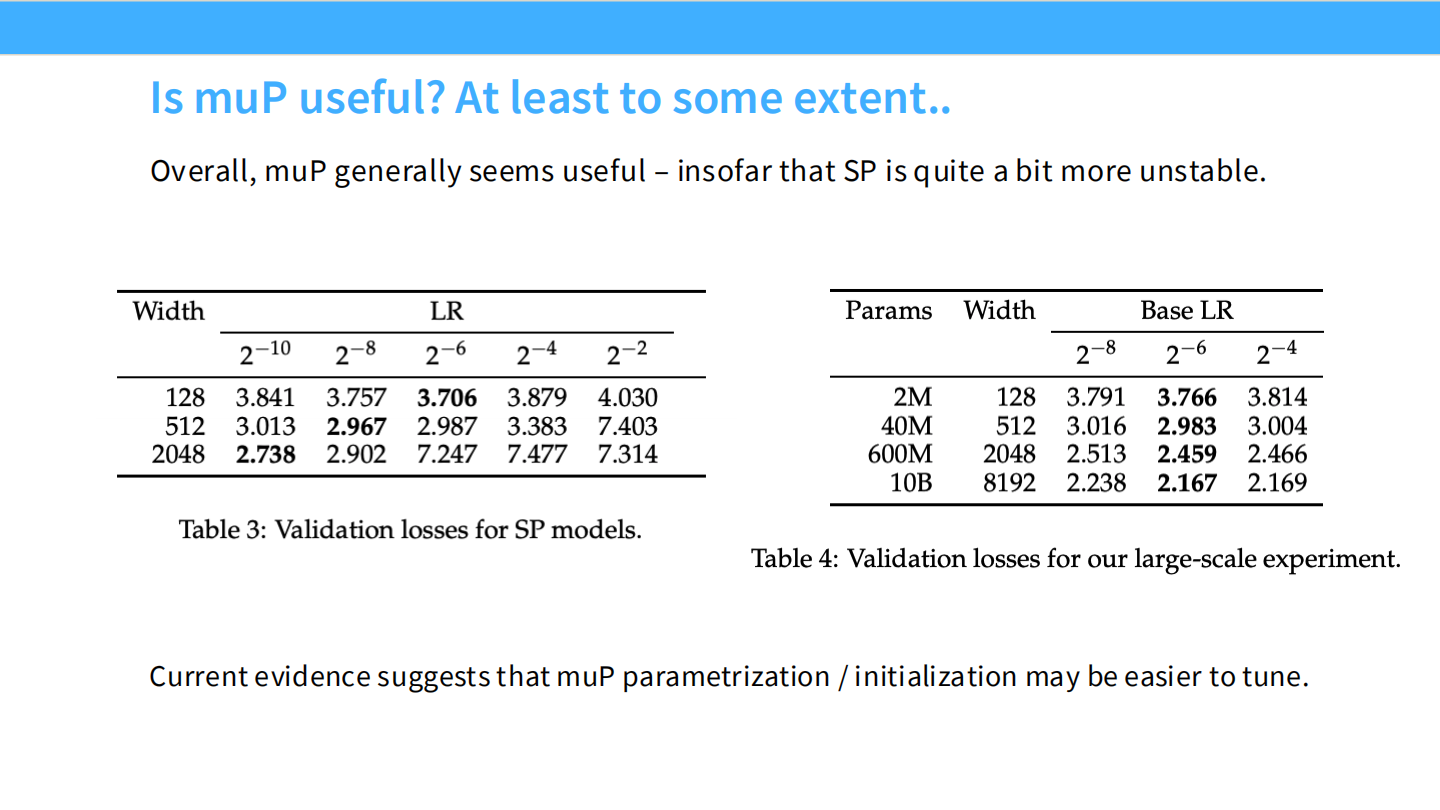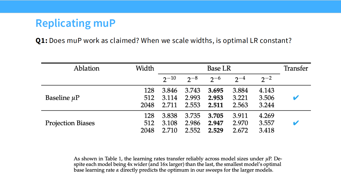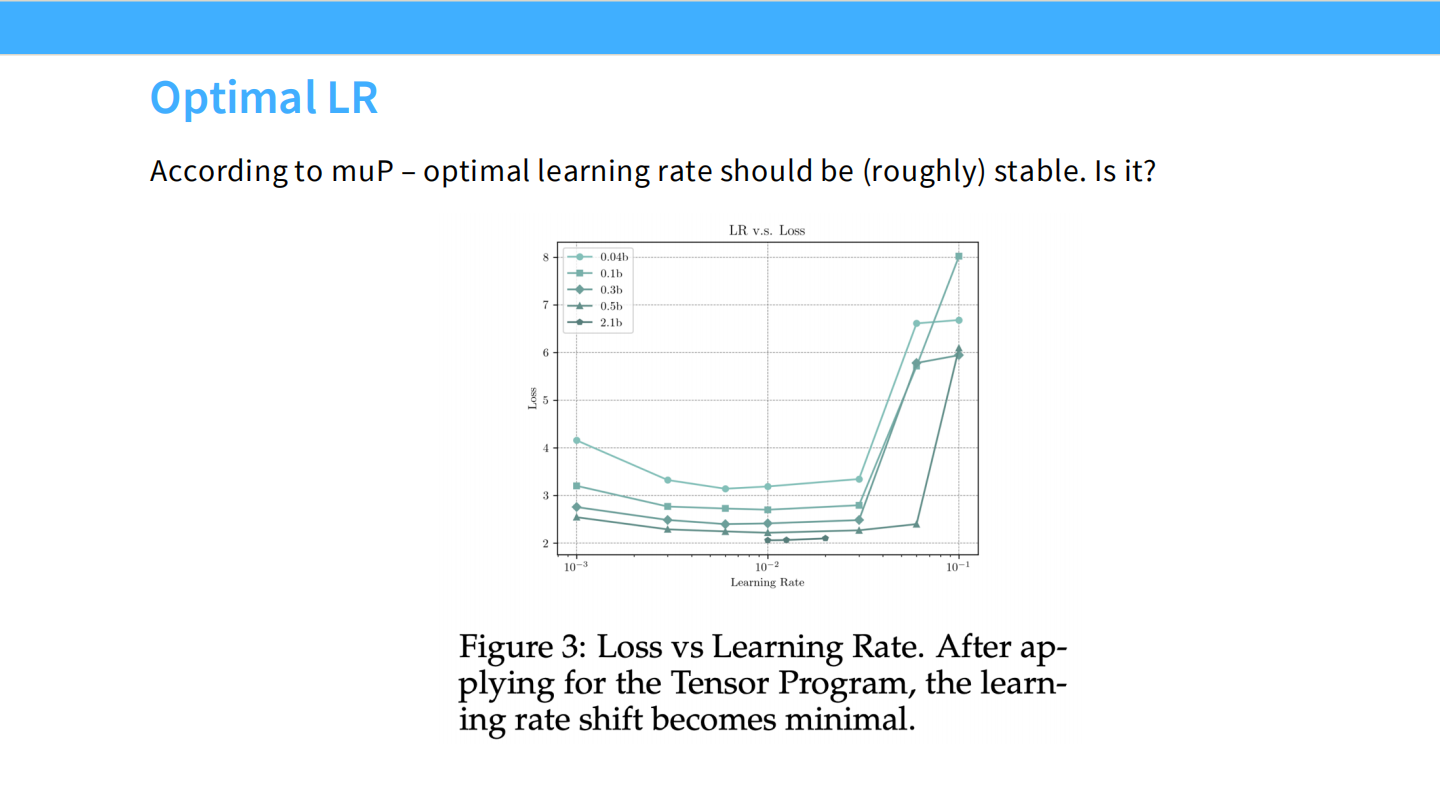 - 问题: muP 真的像宣称的那样有效吗?即“最佳学习率是常数”?