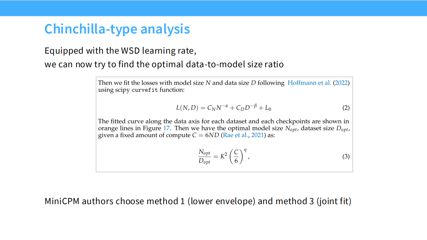 - MiniCPM: muP + WSD 调度 + Chinchilla 联合拟合。