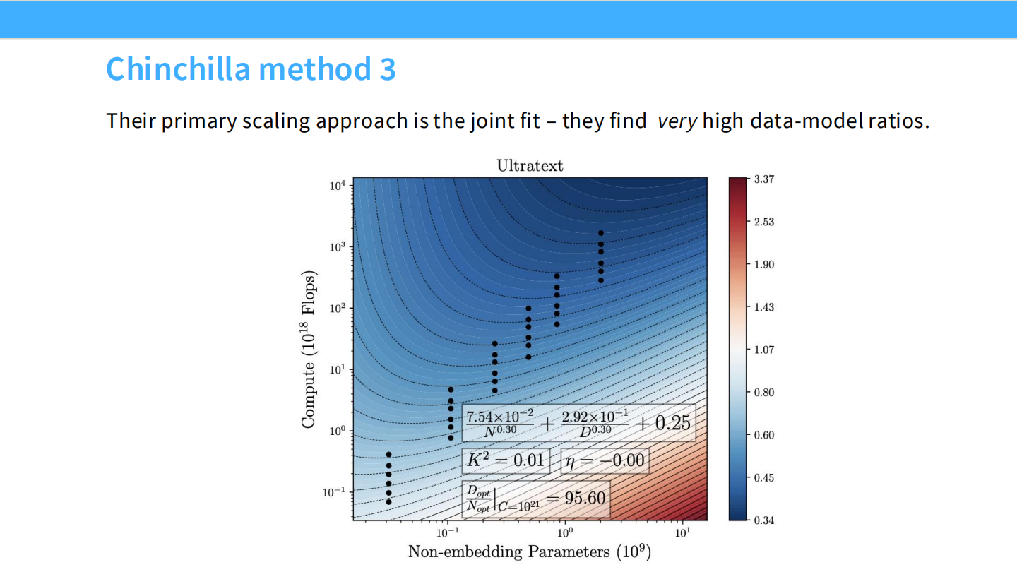 - 内容: 直接拟合参数化公式:$L(N, D) = E + AN^{-\alpha} + BD^{-\beta}$。