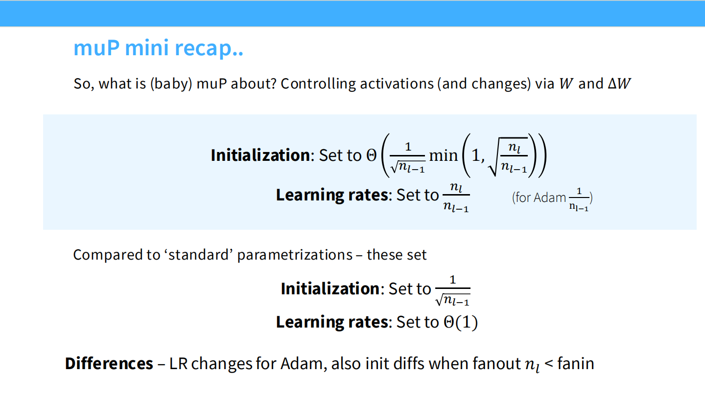 - 总结: muP 的核心就是控制 Activations 和 Updates 的规模。