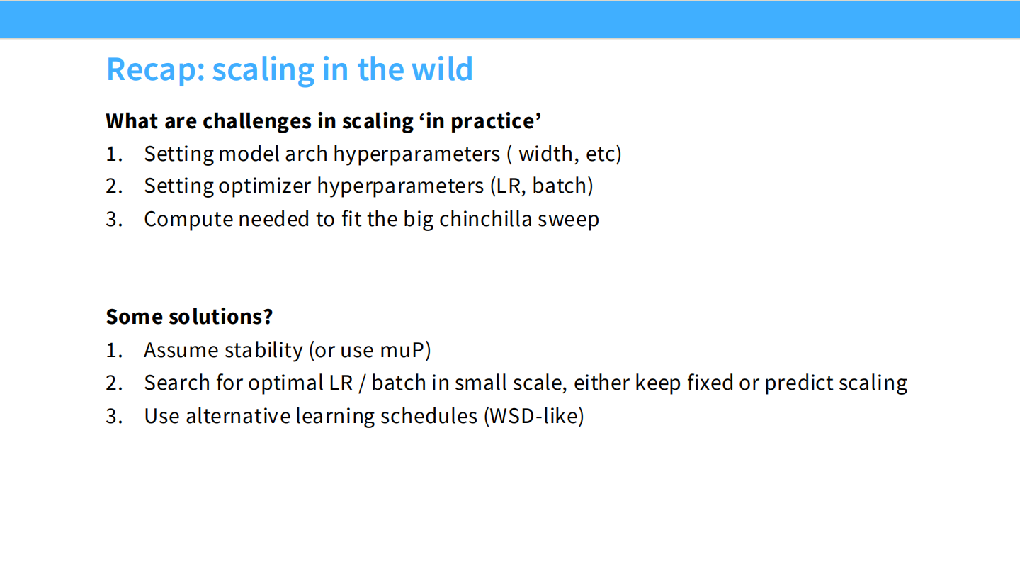 - 解析: 本节课的主题是“扩展定律的案例研究与细节”。既然我们知道了 Scaling Law 的存在,那么在实际操作中(In the wild),我们该如何具体执行?