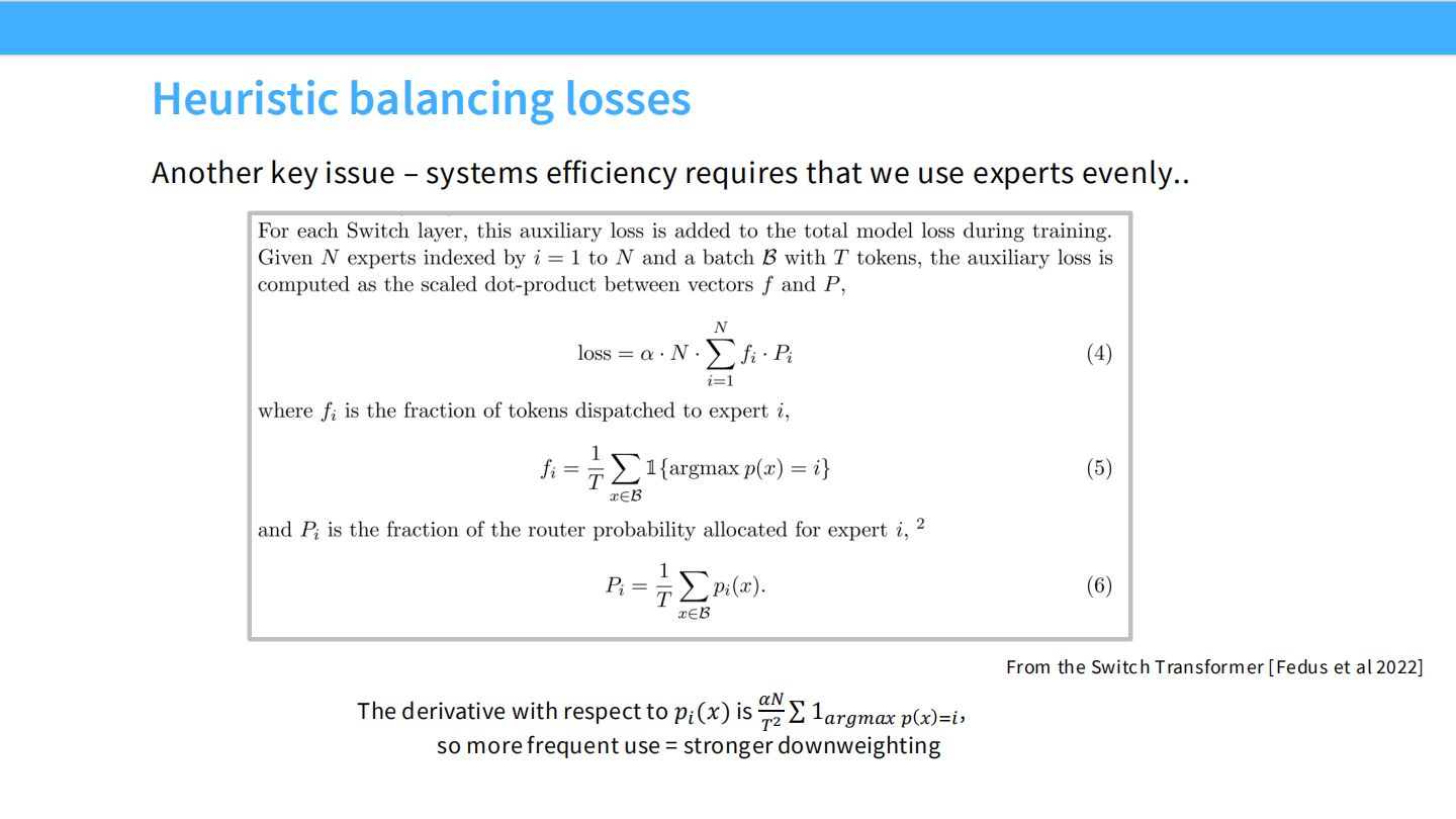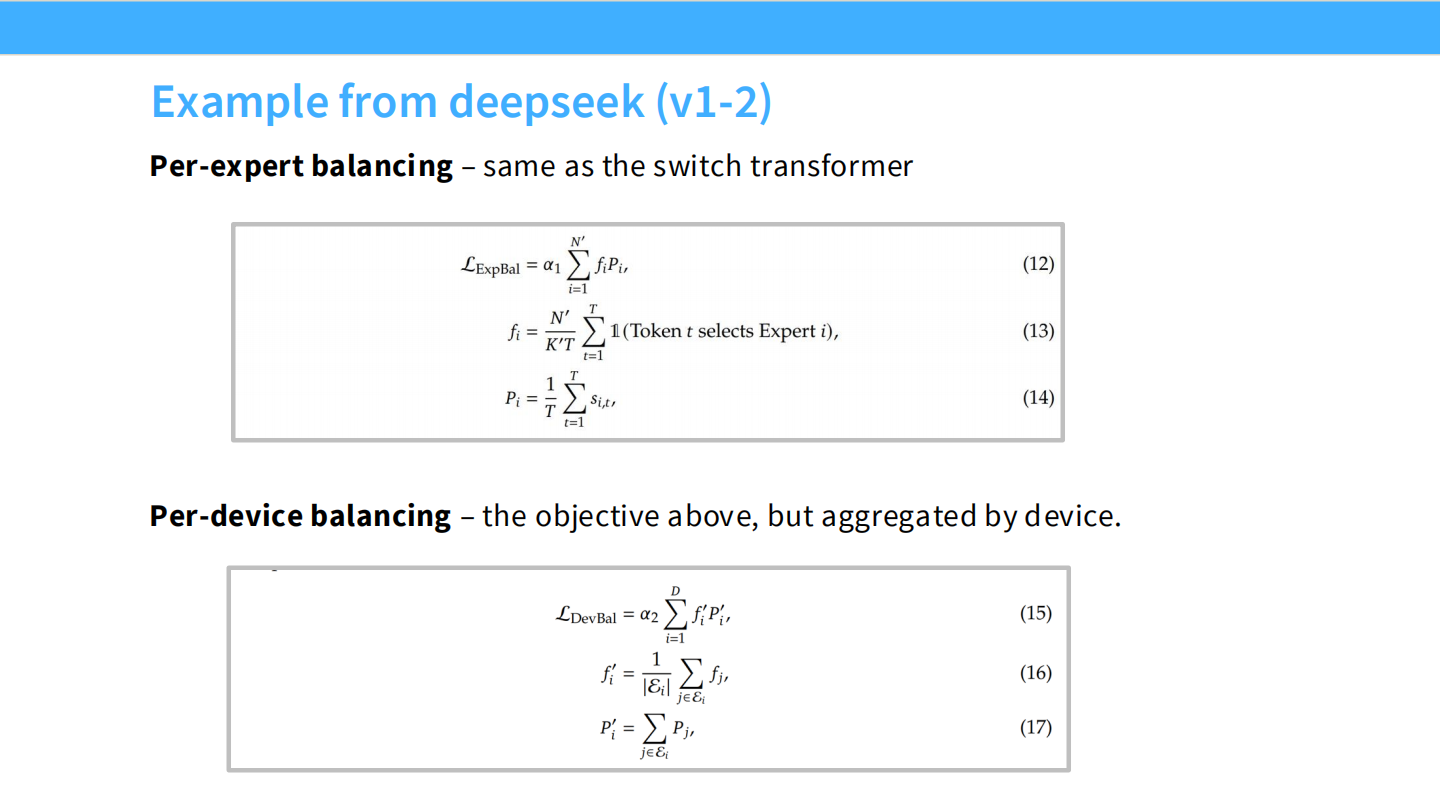 - Training objectives (训练目标): 除了语言模型的 Cross-Entropy Loss,还需要加什么辅助 Loss 来保证负载均衡?