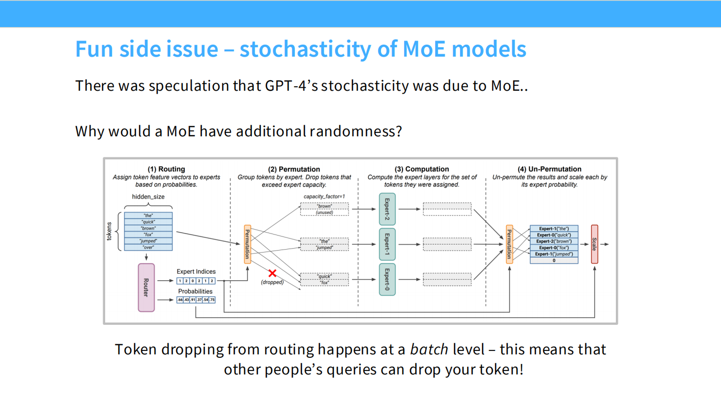 - GPT-4 的随机性之谜: 早期 GPT-4 即使 Temperature=0 输出也不稳定。原因就在于此。