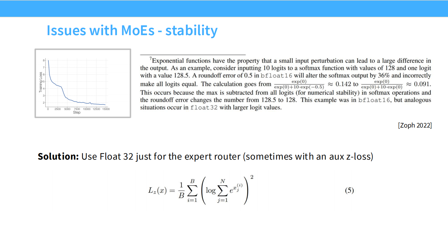 - 作用: 它惩罚过大的 Logits 值,迫使 Router 的输出保持在 0 附近。这从根本上减少了 Softmax 溢出的风险,是 MoE 稳定训练的必备技巧。