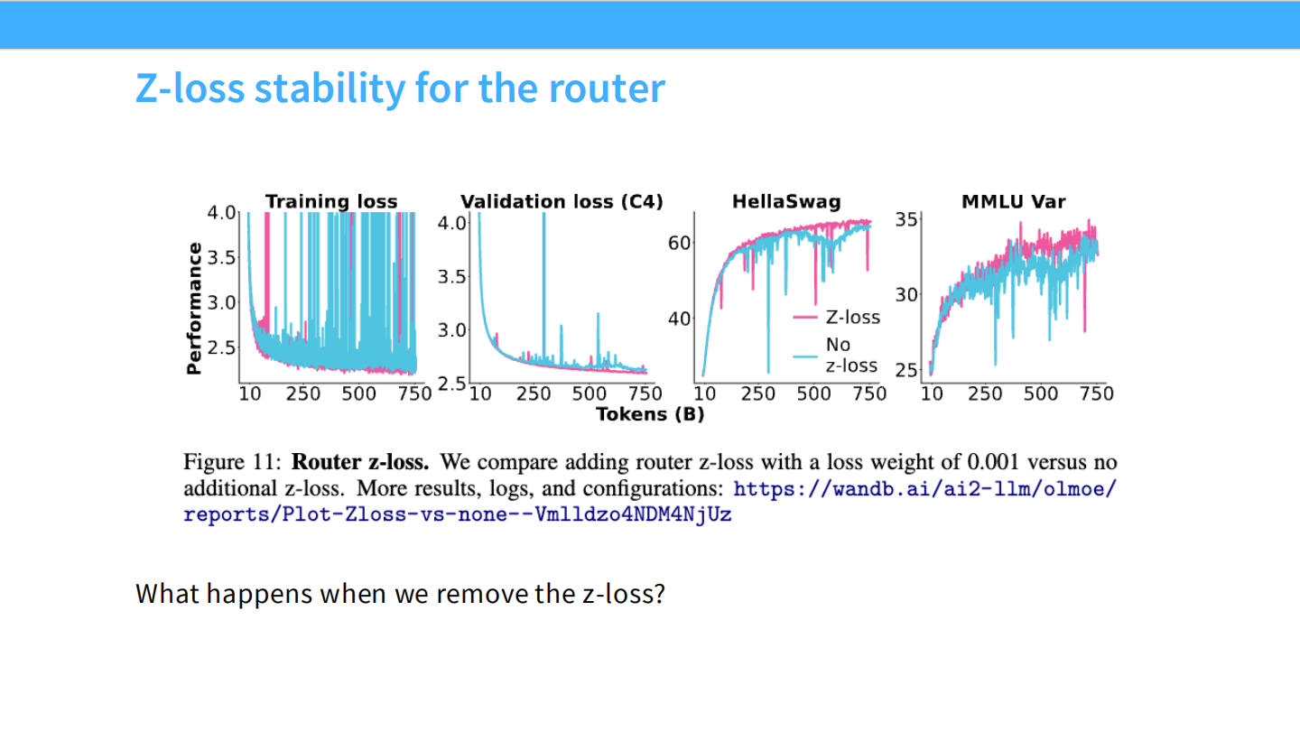 - Z-loss 公式: $L_z(x) = \frac{1}{B} \sum \log^2 \sum e^x$。