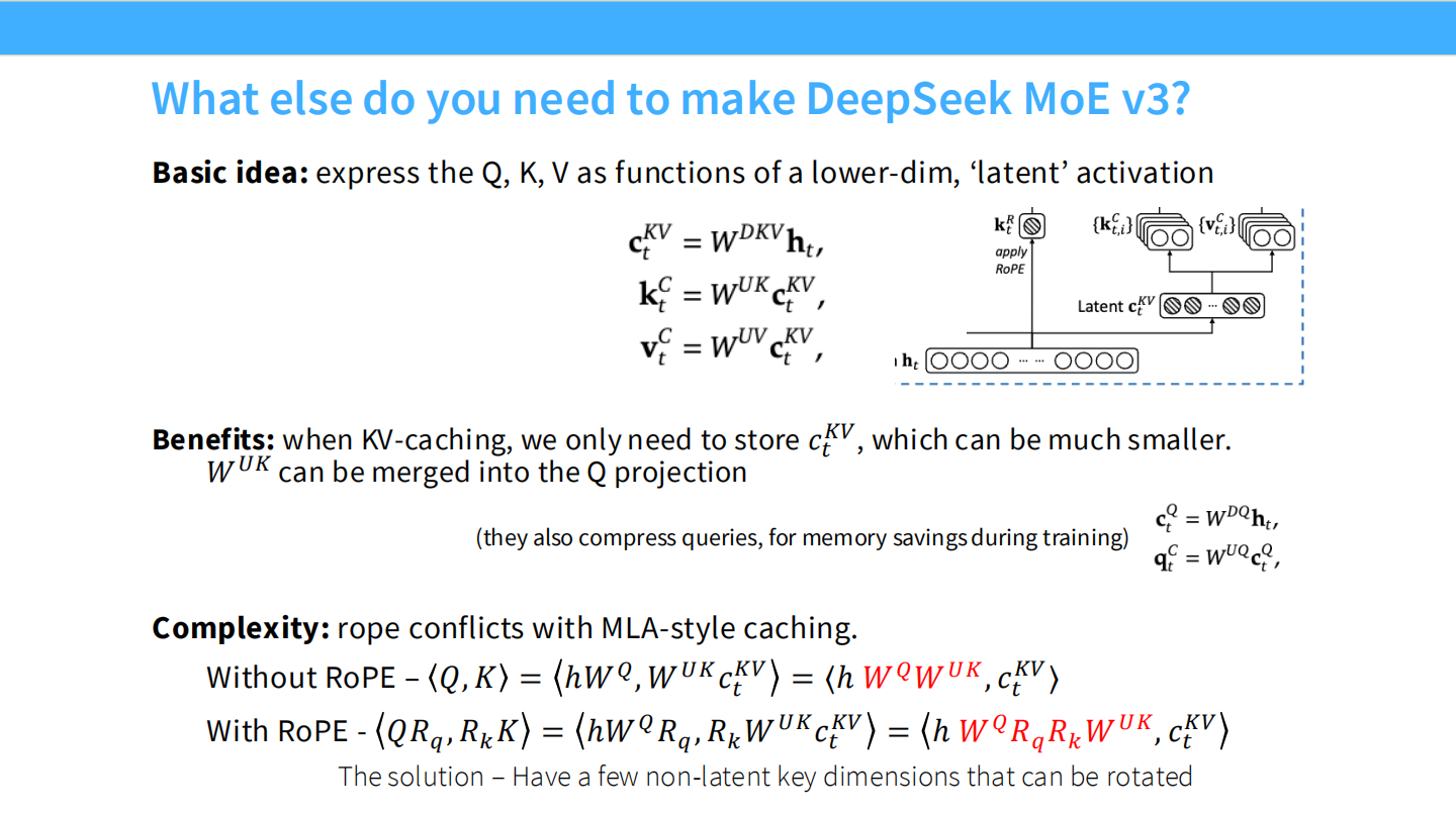 - DeepSeek 解法: 混合 Key 策略。把 Key 劈成两半: